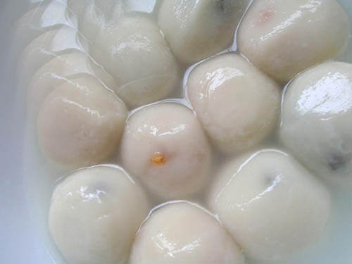 至少到了明朝,人们就以‘元宵’来称呼这种糯米团子。刘若愚(生于一五四一)的《酌中志》记载了元宵的作法:“其制法,用糯米细面,内用核桃仁、白糖、玫瑰为馅,洒水滚成,如核桃大,即江南所称汤圆也”。