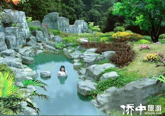 在这里受用世界上最美妙的矿泉温泉洗浴,也同时享受着难得的森林之浴。一切都沐浴在四季不变的绿韵之中,清纯如酿的空气,会让你沉醉。这里的鑫字山、云飞洞等景观,任游客踏青、探幽;铁索桥对面的树木里,有锦鸡在亮翅,有猴子在攀援,有黑熊在踱步,银滩接绿潭的河里,有珍贵的娃娃鱼在嬉游。此外,临溪而建的瑶家苗家木楼,欢迎你去造访做客,瑶姑苗女的长歌短调,向你展示一幅幅浓艳的风情画。