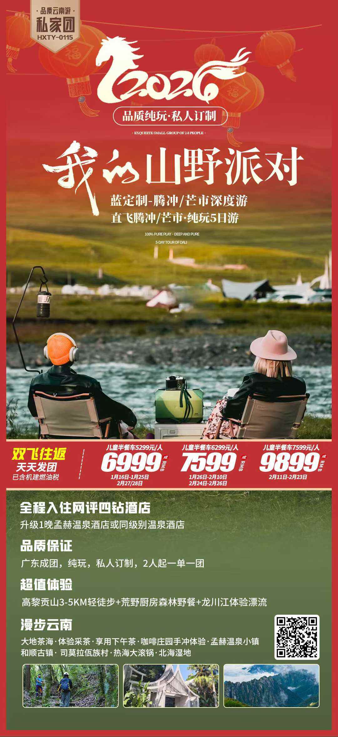 [跳跳]全程网评四钻,特别安排1晚孟赫温泉酒店或同级别酒店