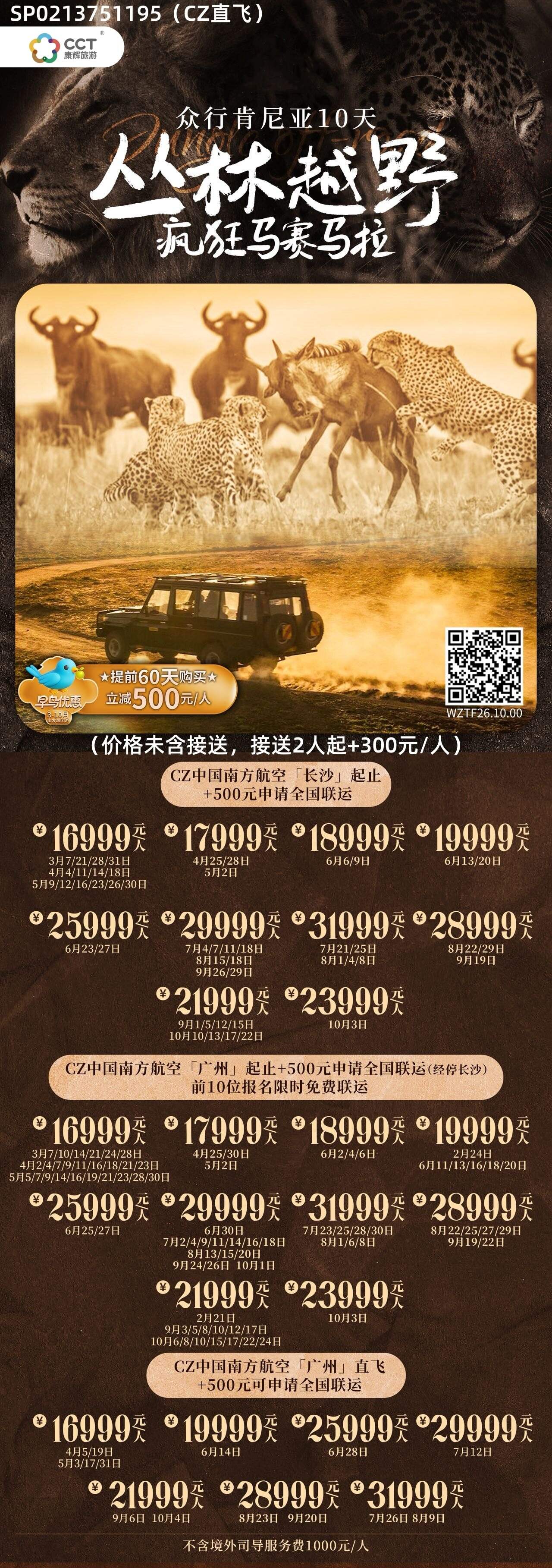 迭代升级:马赛马拉3连住,2次全天游览