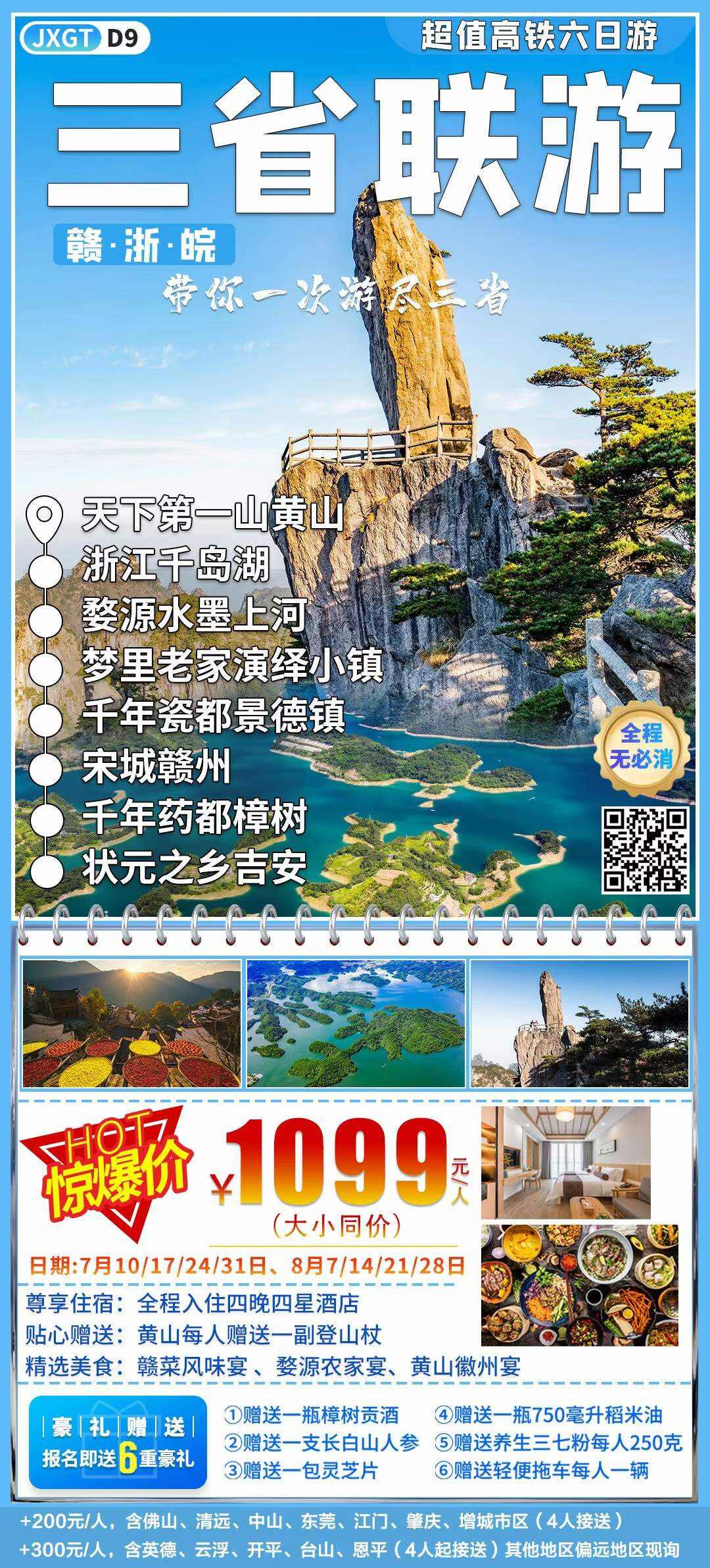 【三省联游】只要1099无必消,黄山+千岛湖+婺源+景德镇高铁六天