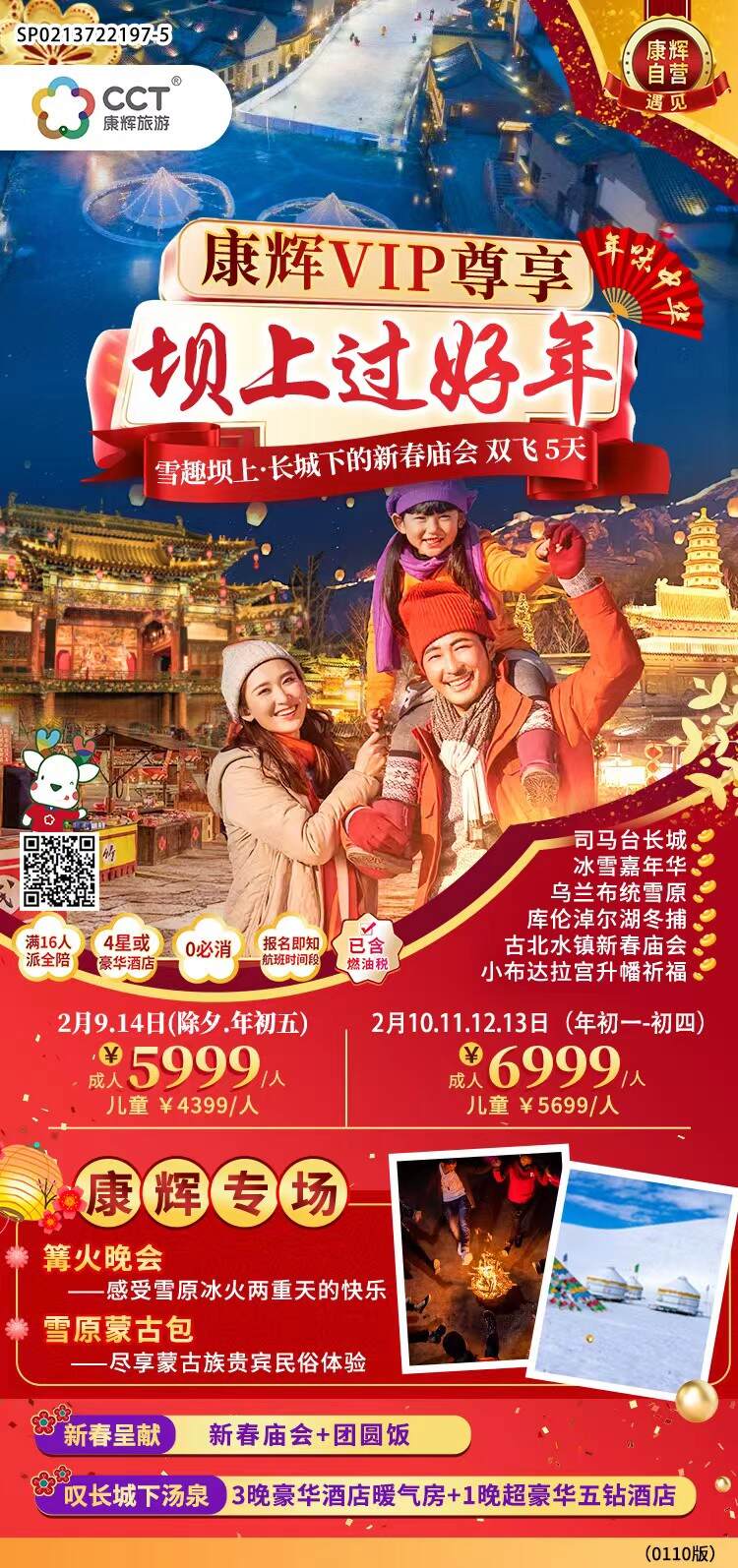 <遇见>广州北京天津双飞,雪趣坝上泉暖古北双飞5天跟团游,冬游纯玩
